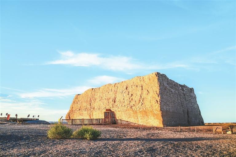歲月洗禮,如今的陽關(guān)已沒了蹤跡,只剩下一片叫作“古董灘”的洼地,和遠(yuǎn)處的陽關(guān)烽燧。戈壁深處的玉門關(guān),被稱為“小方盤城”,走進(jìn)城中仍能感受到雄關(guān)莊嚴(yán)。往西5公里處,還能見到一段漢長(zhǎng)城頑強(qiáng)挺立。