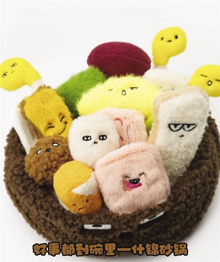 記者看到,“麻辣燙”和“砂鍋”毛絨玩具花束有多個(gè)單品,模擬了丸子、蟹排、年糕、香菇等菜品。而且每款都有自己的名字——嘻嘻西蘭花、香香香菇、黏黏年糕、哇哇菜、謝謝蟹排、玩去吧丸子。可愛(ài)有趣的毛絨玩具再次走紅網(wǎng)絡(luò),成為不少“大朋友”的必入文創(chuàng)單品。連日來(lái),這款單品引發(fā)近20萬(wàn)人涌入天貓旗艦店搶購(gòu),“麻辣燙”幾度售罄。甘肅省博物館文創(chuàng)中心負(fù)責(zé)人崔又心介紹,“麻辣燙”火了之后,天貓店客服每天都會(huì)收到來(lái)自消費(fèi)者“求補(bǔ)貨”留言。