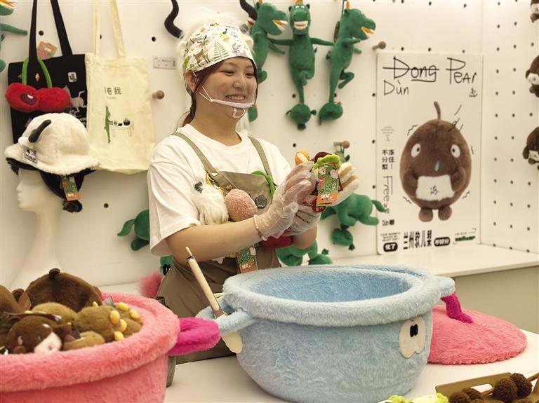 “麻辣燙沒(méi)有了,但是我買(mǎi)到砂鍋啦!”8月4日,外地游客張欣在朋友圈曬出在蘭州游玩時(shí)的購(gòu)物“戰(zhàn)績(jī)”。張欣口中的“麻辣燙”和“砂鍋”并非是餐桌上的美食,而是甘肅省博物館近期推出的系列文創(chuàng)產(chǎn)品。這毛茸茸的“麻辣燙”和“砂鍋”,靈感來(lái)源于地方特色美食,屬于館內(nèi)“甘肅(不)土特產(chǎn)”系列,一經(jīng)推出便大受歡迎。此外,還有“凍梨”“櫻桃”“黃芪”等萌物,一起被端上游客的“餐桌”。