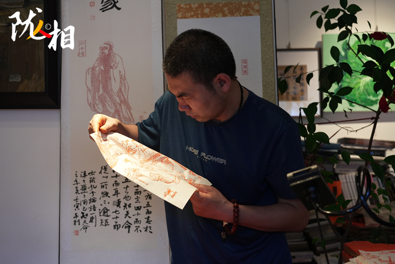 “木刻版畫最困難的步驟,就是能將原圖精準(zhǔn)復(fù)刻,在雕刻過程中,稍有不慎便會(huì)出錯(cuò),需要全神貫注投入其中,才能在刀尖上誕生出精美的藝術(shù)品。”李安樂說(shuō),拓印前要進(jìn)行刷色,首先需要制作顏料。他選擇了純色拓印,在朱砂粉中倒入明膠,加入水或酒稀釋,攪拌后顏料就制作完成了。接下來(lái)便是開始潤(rùn)板,再開始刷色,最后將紙張覆蓋在木板上進(jìn)行拓印,在拓印過程中,利用櫚擦或馬蓮進(jìn)行摩擦拓印,等這一系列操作完成后,一幅栩栩如生的木刻版畫就呈現(xiàn)了出來(lái)。