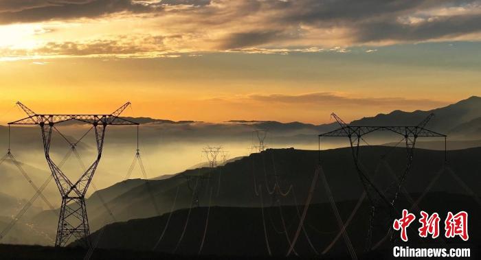 8月14日晚,蘭州市榆中縣馬坡鄉(xiāng),夕陽在云海里翻滾,映照大地和村莊城鎮(zhèn),美不勝收。圖為日落映照城鎮(zhèn)。牛遠(yuǎn)明 攝