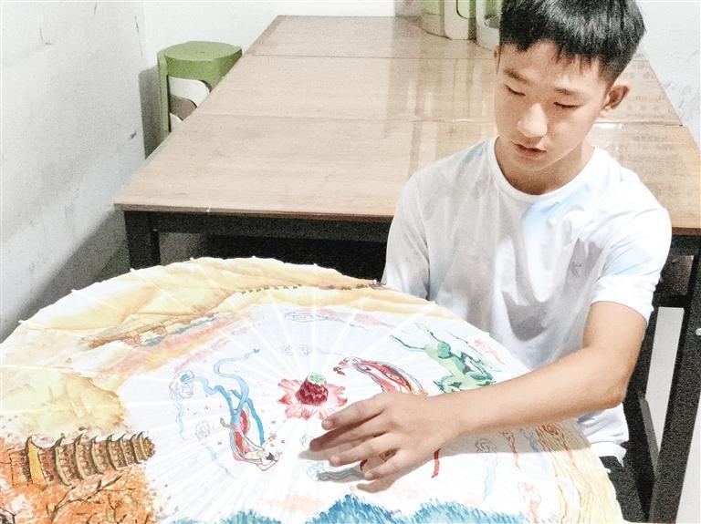 原標題:少年執(zhí)筆繪巧思在油紙傘上講述絲路故事