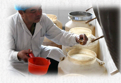 《武山史話》中說(shuō):“四門貢醋,天賦其佳。過(guò)夏不霉,經(jīng)冬不凍,經(jīng)年不減其味。”如果仔細(xì)觀察,就會(huì)發(fā)現(xiàn)四門醋的表面會(huì)凝結(jié)出一層珠光碧翠的薄皮。專家們講,這是醋酸菌的群體物,也就是菌膜,有利于醋酸菌的氧呼吸。搖晃后會(huì)自然沉淀,即成“醋精華”。所以四門醋一直被稱為“天釀”,經(jīng)久不變,且在歲月的流變中逐漸形成了獨(dú)具風(fēng)味的品質(zhì)。