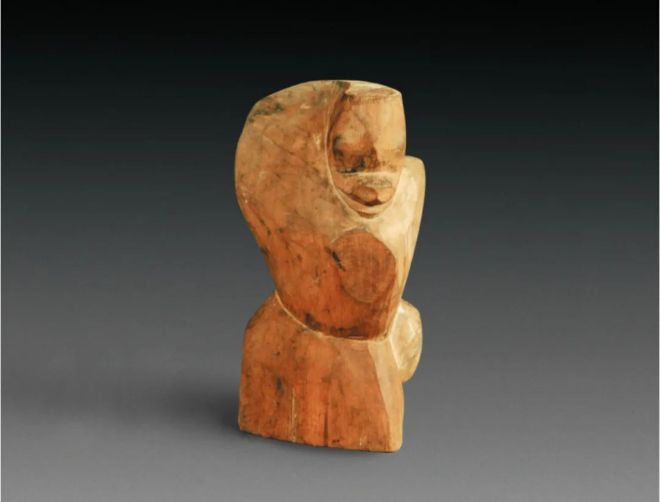 彩繪木猴,漢代,一級(jí)文物。武威市磨嘴子漢墓出土。寬 17.3 厘米,高 32.5 厘米。木質(zhì),由整木削制而成,全身施黑、白、紅三彩,木猴呈蜷縮、蹲臥狀,刀法簡(jiǎn)潔質(zhì)樸,充滿藝術(shù)感。