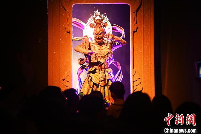 圖為演員在大型洞窟式沉浸體驗劇《樂動敦煌》中表演。九美旦增 攝