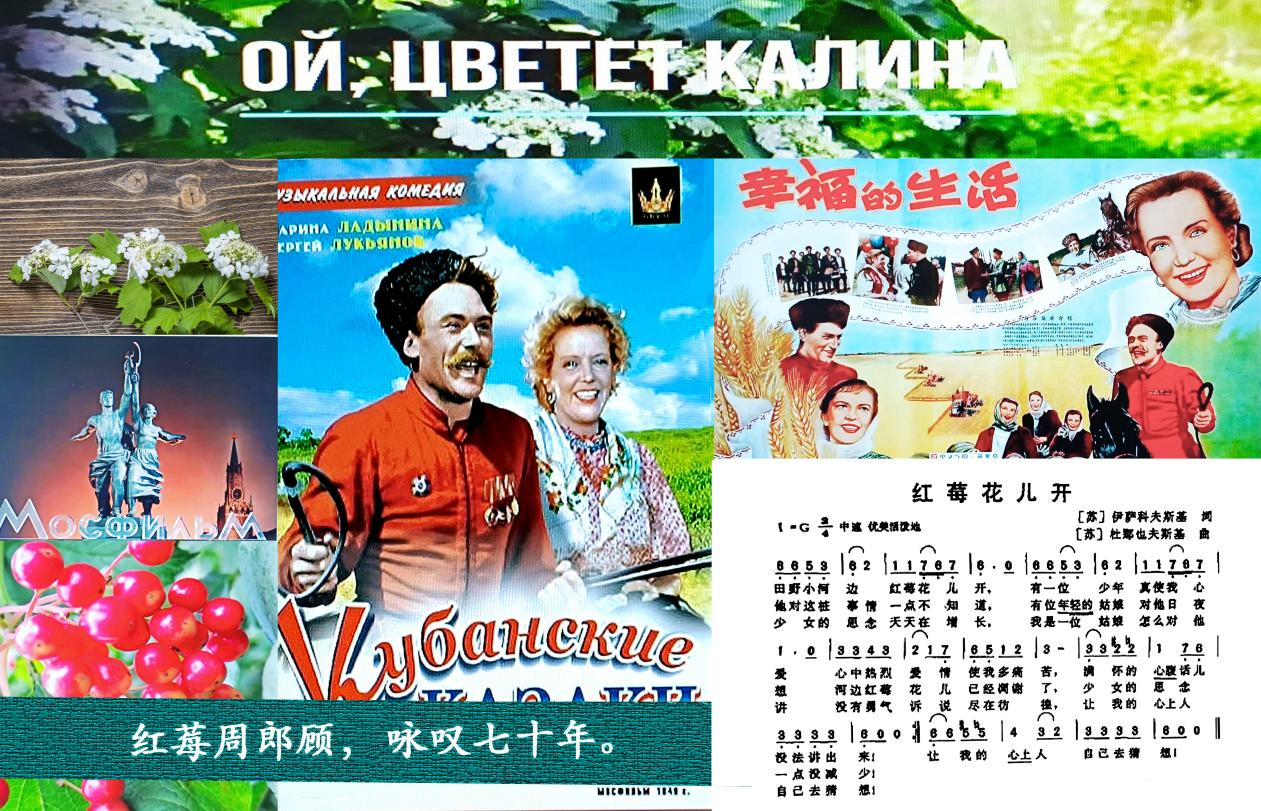6、悠悠老歌箋:悠悠:長久、遙遠(yuǎn)。語出《詩經(jīng)·鄭風(fēng)·子衿》:“青青子衿,悠悠我心。”老歌箋:指在我國翻譯并傳唱至今的蘇聯(lián)電影《幸福的生活》插曲《紅莓花兒開》。