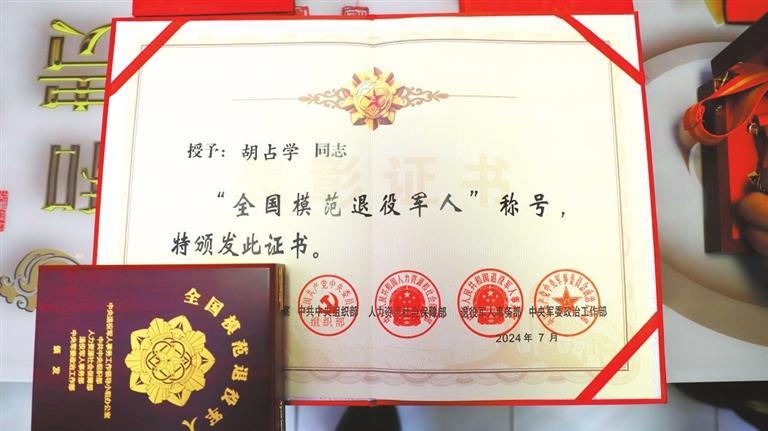 今年8月,胡占學(xué)被人力資源和社會(huì)保障部、中共中央組織部、退役軍人事務(wù)部、中央軍委政治工作部等軍地相關(guān)部門聯(lián)合授予“全國模范退役軍人”榮譽(yù)稱號(hào),這是對退役軍人的最高榮譽(yù)和最大褒獎(jiǎng)。