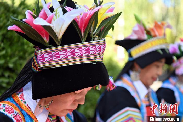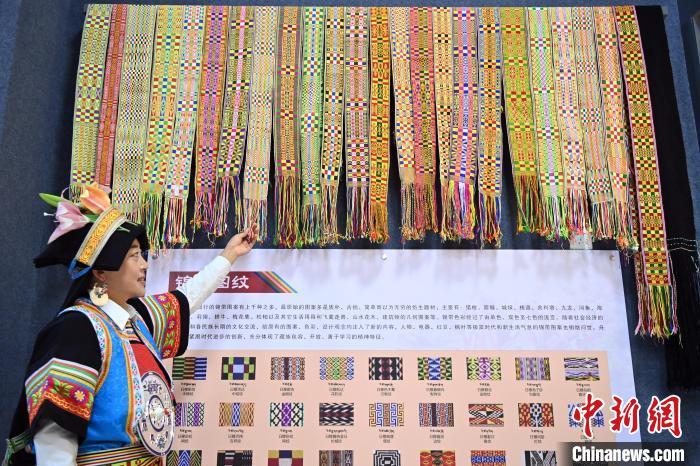 9月26日,甘肅省甘南藏族自治州舟曲縣,當?shù)夭刈鍕D女展示錦帶佩戴方式。錦帶是舟曲藏族婦女用以束腰、扎靴、攏發(fā)乃至點綴服飾的花帶子,艷麗多彩、圖案優(yōu)美。每逢吉慶節(jié)日,藏族婦女穿戴的華麗盛裝就需要少則五、六條,多則十幾條寬窄長短相宜的錦帶來裝飾。據(jù)介紹,藏族織錦帶技藝歷史悠久,一千多年以前,古羌族和吐蕃已有了較發(fā)達的手工編織技術,在艱難的生活條件下對服飾等生活用品除實用功能之外,已經有了強烈的審美追求,是研究舟曲羌藏文化的“活化石”。中新社記者 九美旦增 攝