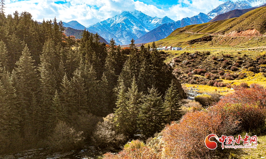 10月9日,在祁連山國(guó)家公園甘肅省張掖市肅南裕固族自治縣大河鄉(xiāng)段,一幅秋日畫卷在藍(lán)天白云的映襯下徐徐展開。這里,雪山、森林、草原、濕地、峽谷、河流等多種自然景觀交相輝映,美不勝收。