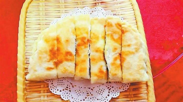 烙饃則是最關(guān)鍵的一環(huán),鍋?zhàn)詈檬瞧降?,油不宜過(guò)多,待油溫上升到一定溫度后,再將麻腐饃放入鍋里,等底面烙熟泛黃后,將其翻面,再熱。這個(gè)度的把握也是最考廚藝的,饃要熟卻不能過(guò),皮要黃卻不能焦,待麻腐饃兩面出現(xiàn)微黃色且有脆皮時(shí)即可出鍋。