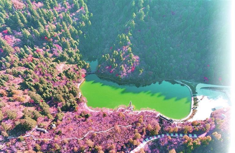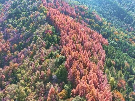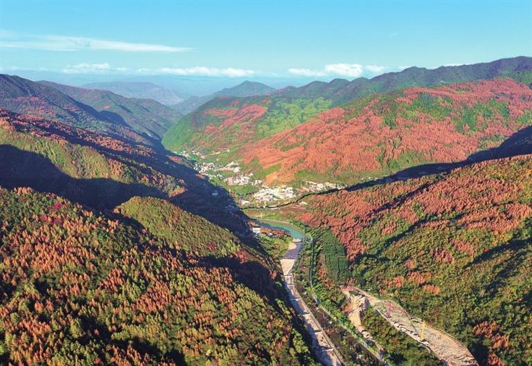 金秋時節(jié),位于宕昌縣的官鵝溝國家森林公園秋色盡染,斑斕如畫。