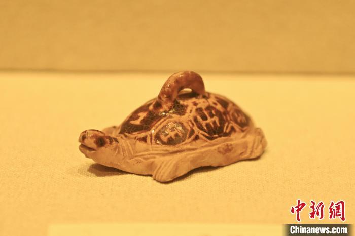 10月27日,在甘肅省博物館內展陳的褐釉瓷龜。中新社記者 李亞龍 攝