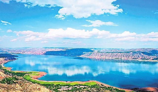 炳靈湖 雄偉的劉家峽大壩阻斷黃河,在永靖境內聚成了一座高峽平湖。因這座湖毗鄰炳靈寺石窟和雄奇險秀的炳靈石林,故稱其為炳靈湖。整個湖水,在夏秋季呈綠色,就像一塊翡翠鑲嵌在群山之中,散發(fā)著耀眼的光芒,夏秋呈翡翠色,冬春呈藍色,由于水質清澈,群山倒映水中,水天一色,加之湖面廣闊無垠,看上去平靜如海。但每當劉家峽水庫泄洪的時候,磅礴的氣勢猶如蛟龍出水,翻江倒海,氣沖云天。