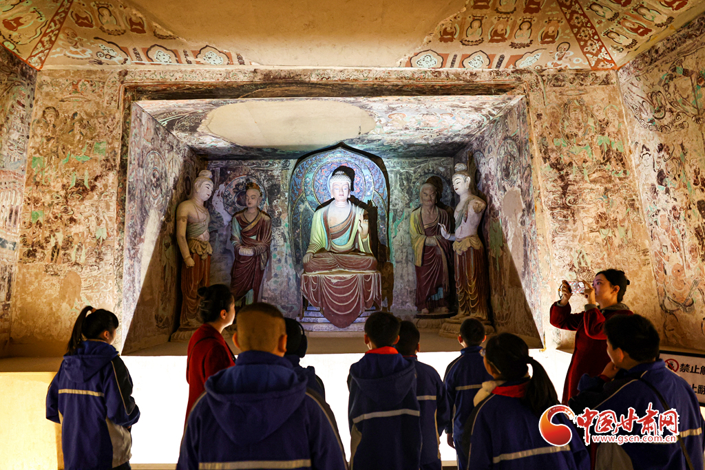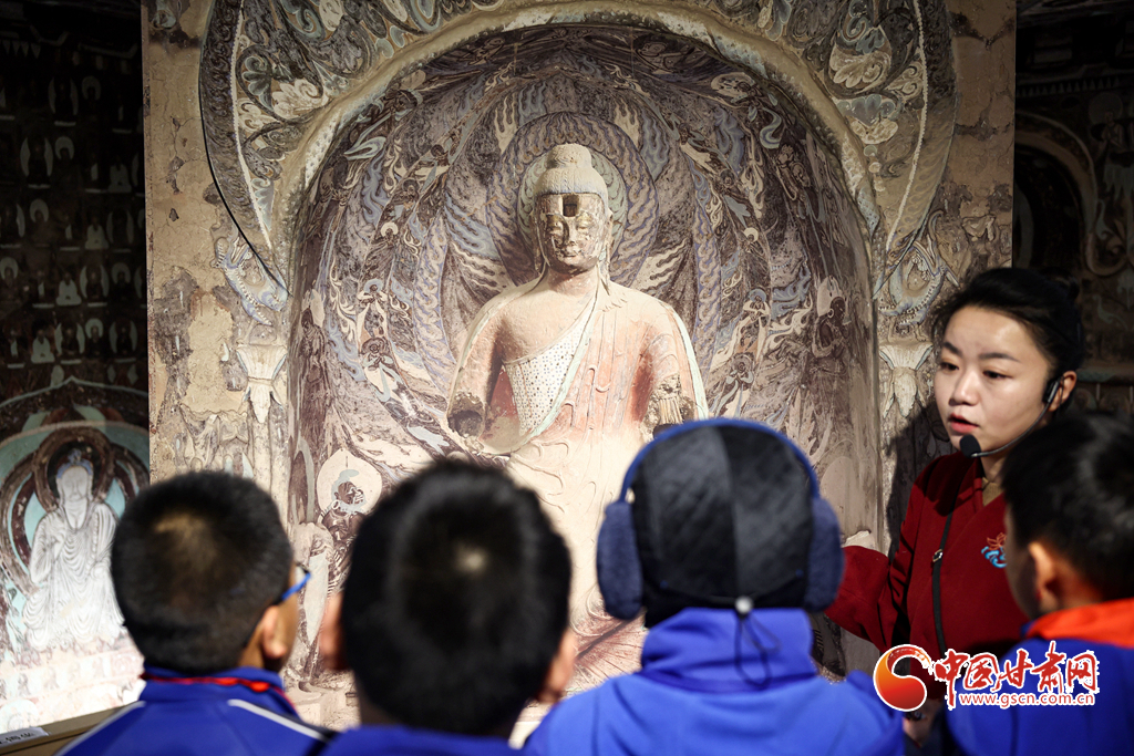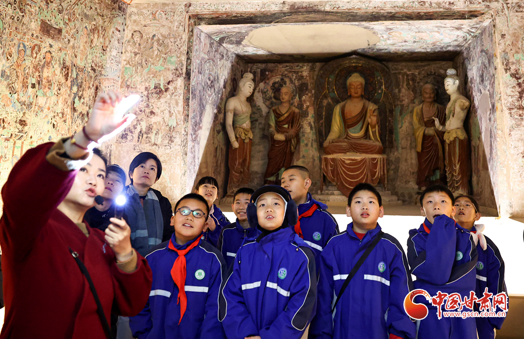 12月29日,蘭州市城關區(qū)安樂村小學學生在家人的陪同下來到敦煌研究院蘭州分院敦煌藝術館,欣賞“覺色敦煌 莫高精神”敦煌石窟藝術展,在周末時光近距離感受敦煌文化藝術的魅力。