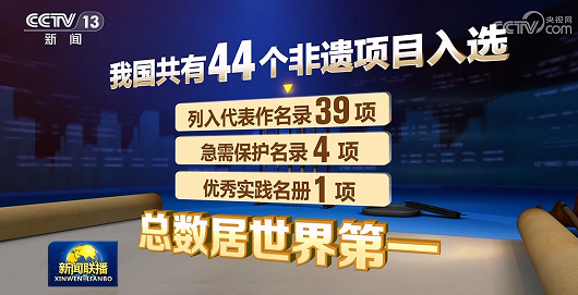聯合國教科文組織非遺名錄名冊,包括三種類型:人類非物質文化遺產代表作名錄、急需保護的非物質文化遺產名錄,以及優(yōu)秀實踐名冊。據央視新聞聯播報道,截止2024年12月5日,我國已有44個項目(39+4+1)列入聯合國教科文組織非物質文化遺產名錄、名冊,總數居世界第一,充分展示了我國開展非遺系統(tǒng)性保護的優(yōu)秀實踐和突出成果。