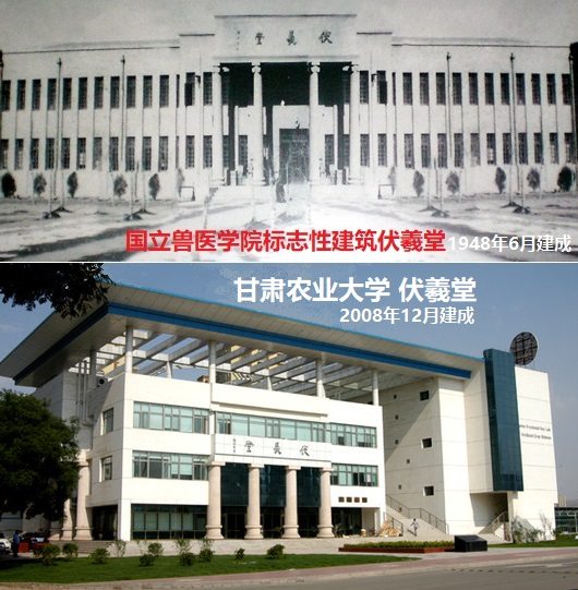 1946年10月國立獸醫(yī)學院成立后,于1948年6月建成了當年蘭州最雄偉壯觀的建筑——伏羲堂。有深厚國學功底的校長盛彤笙,為紀念人文始祖伏羲氏在認識自然、適應自然、改造自然和發(fā)展生產生活的過程中,所進行的一系列造福人類的發(fā)明創(chuàng)造,將這幢教學大樓命名為“伏羲堂”,并親自撰寫了一篇銘文《伏羲堂記》,“用追前烈,以志建堂之艱難”。