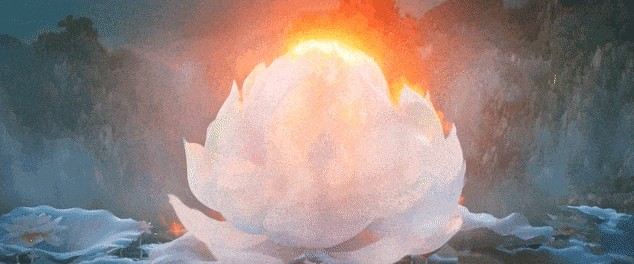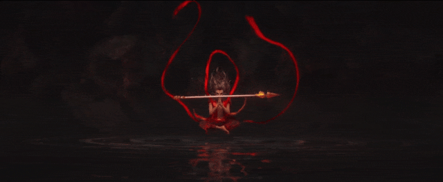 當蓮花綻放,哪吒從花瓣中走出,三頭六臂,手持火尖槍,腳踏風(fēng)火輪,那一刻,傳說中的少年英雄涅槃了。