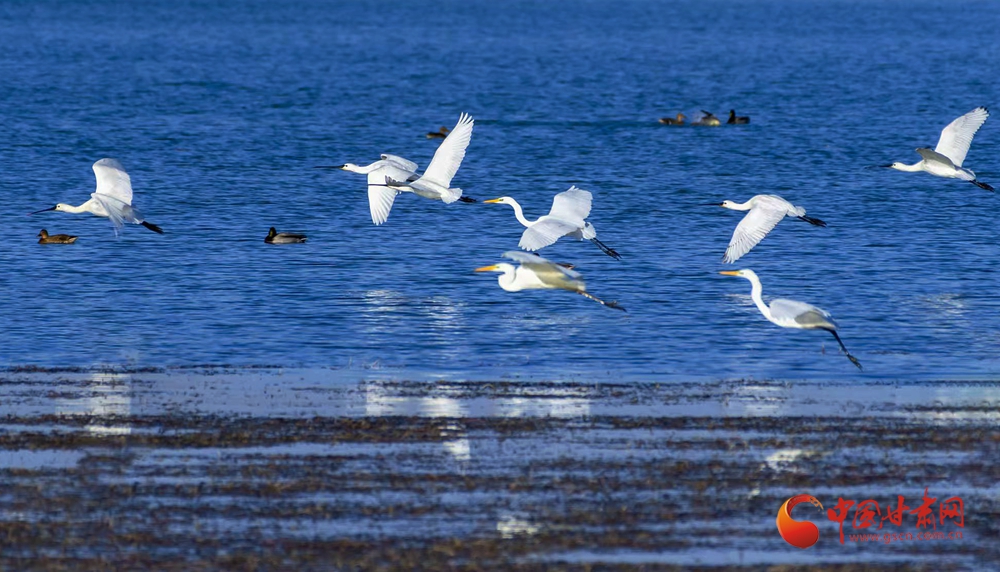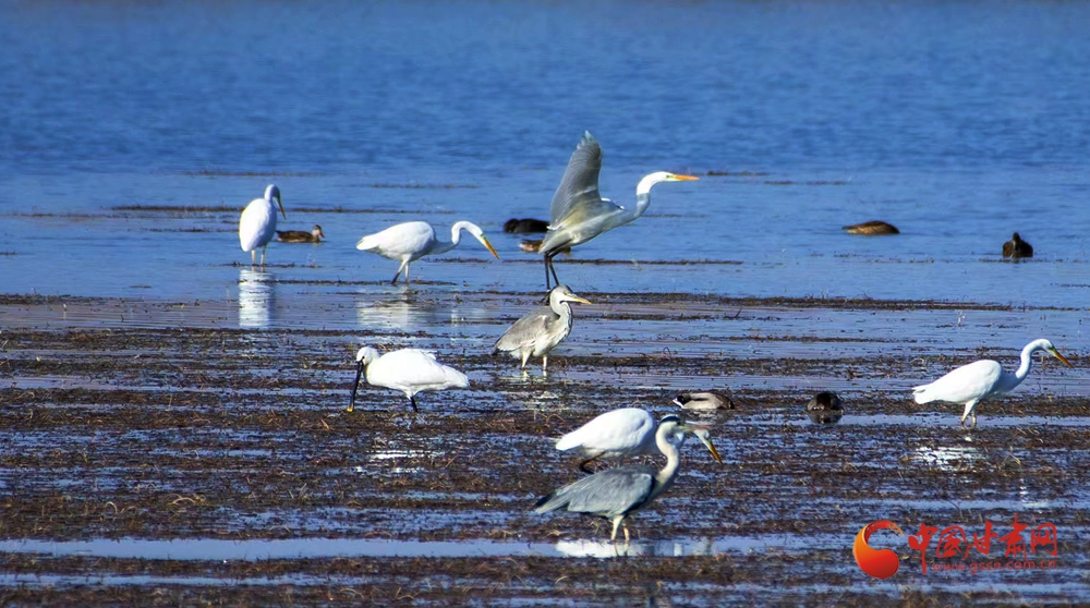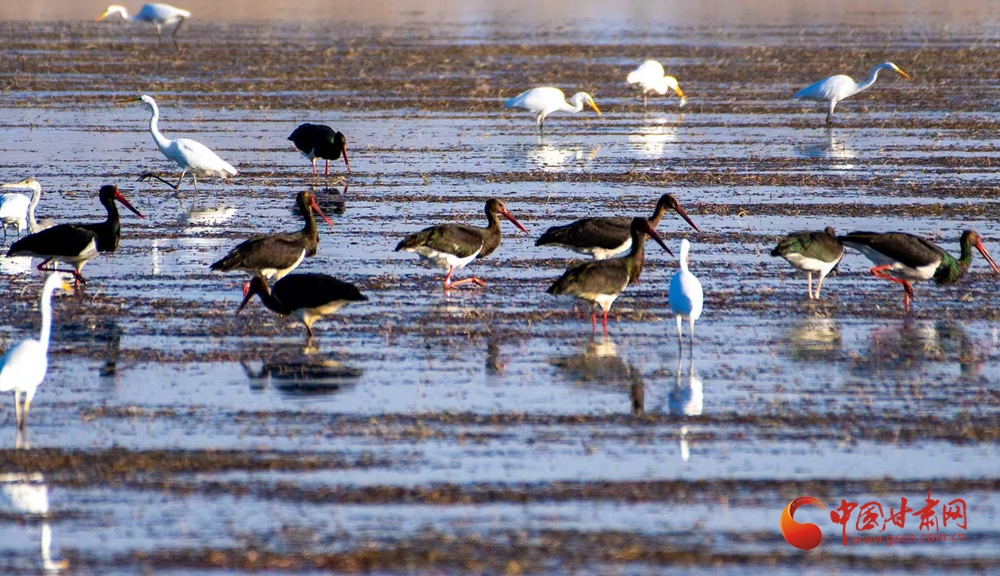 天氣漸暖,張掖黑河濕地涌動著蓬勃生機。黑鸛、白鷺、蒼鷺、琵琶鷺等水鳥感受著春回大地的氣息,飛臨黑河之上,或覓食嬉戲,或翩躚翱翔,盡情享受著早春的愜意時光。