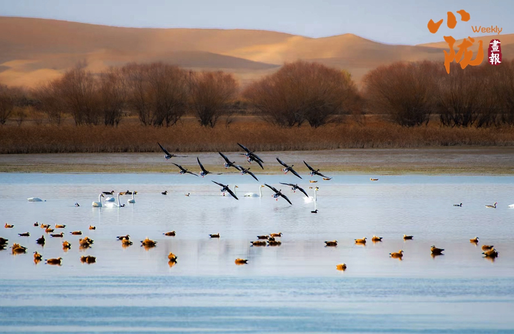鳥類是濕地生態(tài)系統(tǒng)中最活躍、最引人注目的組成部分,也是監(jiān)測濕地生態(tài)狀況變化的一項客觀生物指標。近年來,張掖國家濕地公園生態(tài)得到持續(xù)改善,使得濕地動物明顯增加,黑鸛、大天鵝、熊貓鴨、大白鷺等都是濕地公園的常客,構(gòu)成祁連山下田野村莊一道亮麗風景。