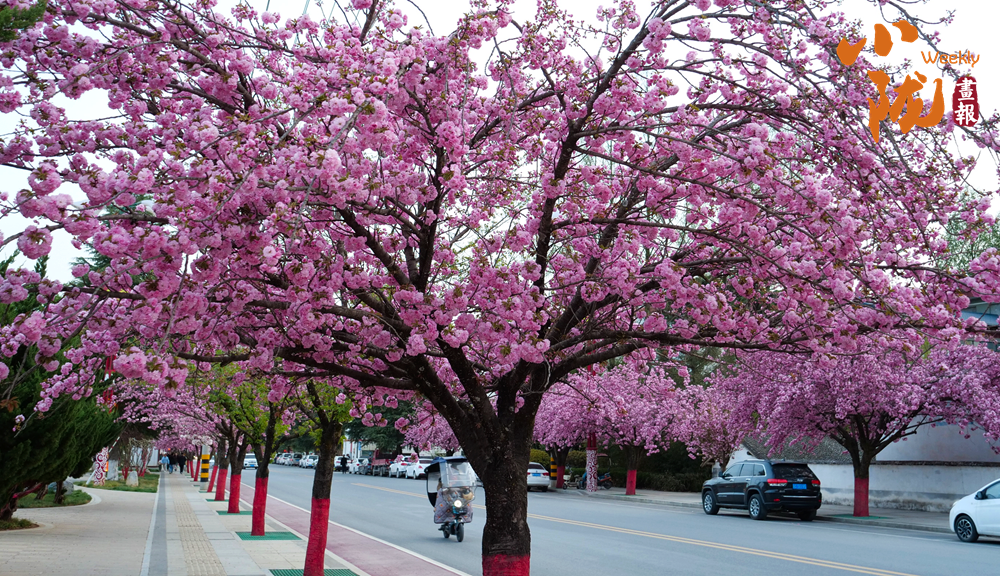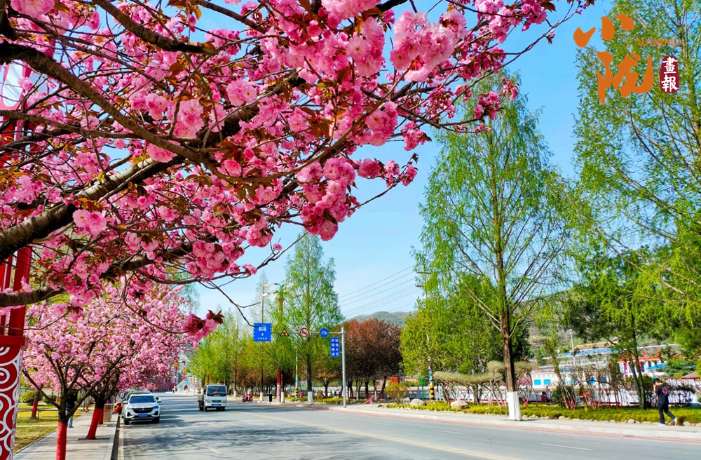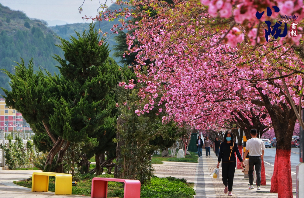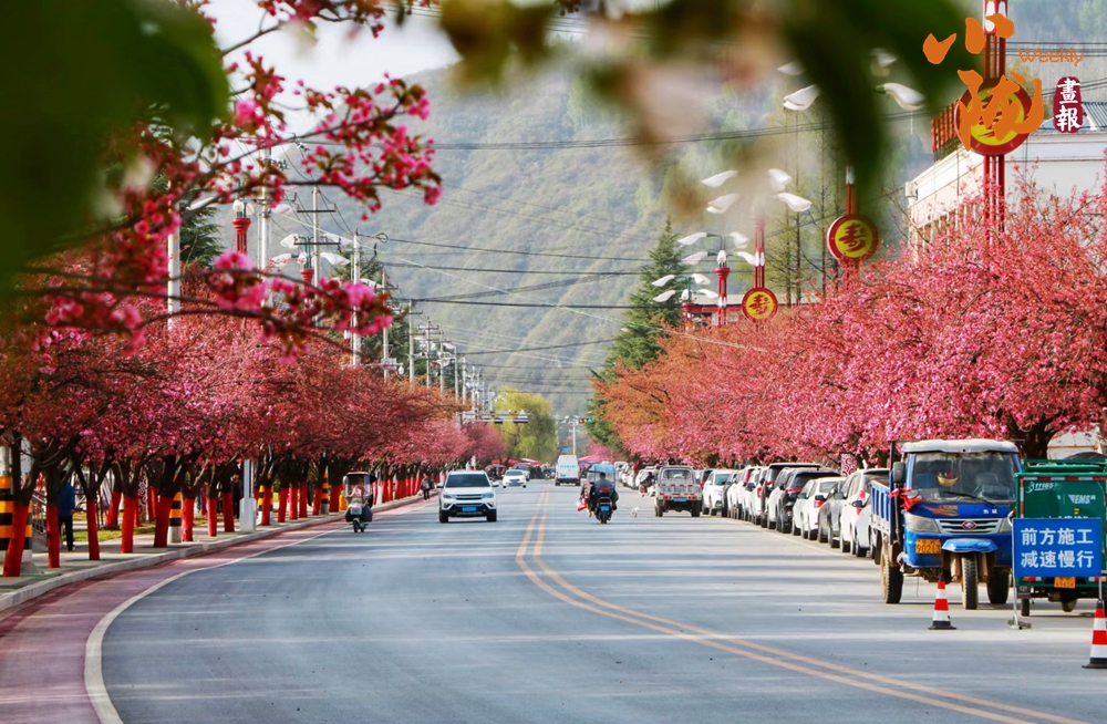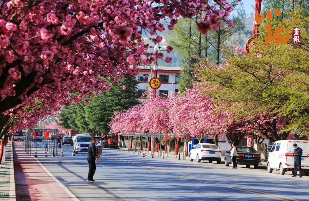 街道兩旁紅綠相映,濕潤(rùn)的空氣中飄散著櫻花的淡淡芬芳,藍(lán)天澄澈如洗,青山如黛,綠水潺潺,形成“一街一景”的綠化格局,為市民打造了觸手可及的“詩(shī)與遠(yuǎn)方”。
