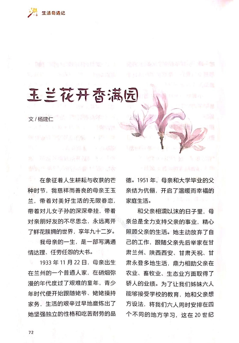 如果生命是一樹花開,母親便是一朵最燦爛、最耀眼的玉蘭。