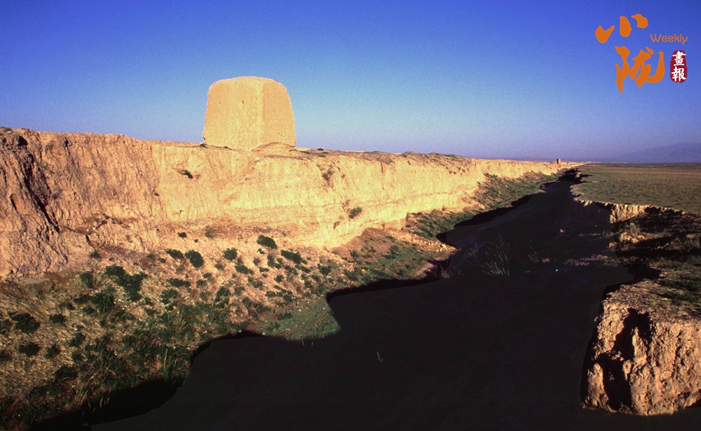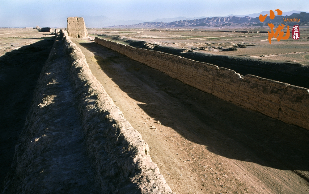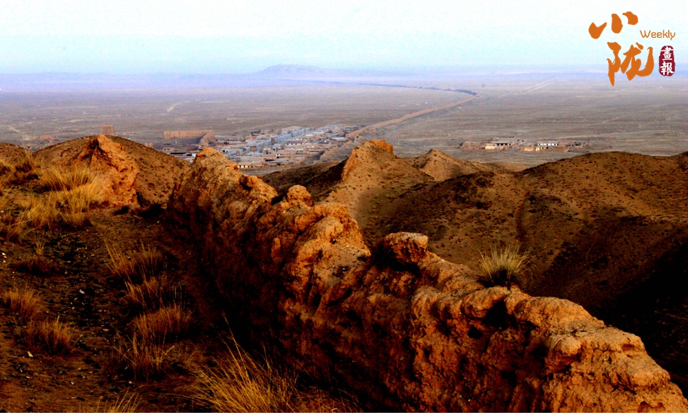 在黛藍(lán)色山脈的映襯下,漢明長城蜿蜒并行,高于地面的黃色城墻是明長城,而顏色稍深的壕溝是漢長城,兩條跨越千載的古長城最近處不過十余米,仿佛攜手講述著遠(yuǎn)古的故事……它們也猶如兩位忠誠的衛(wèi)士,守護(hù)著這片古老的土地,也見證了絲綢之路的興衰變遷。