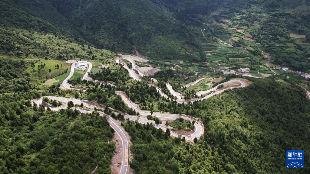 這是7月12日拍攝的舟曲“簪花之路”風景廊道沿線風光(無人機照片)。新華社記者 陳斌 攝