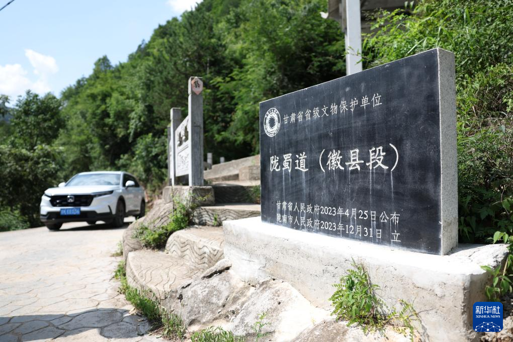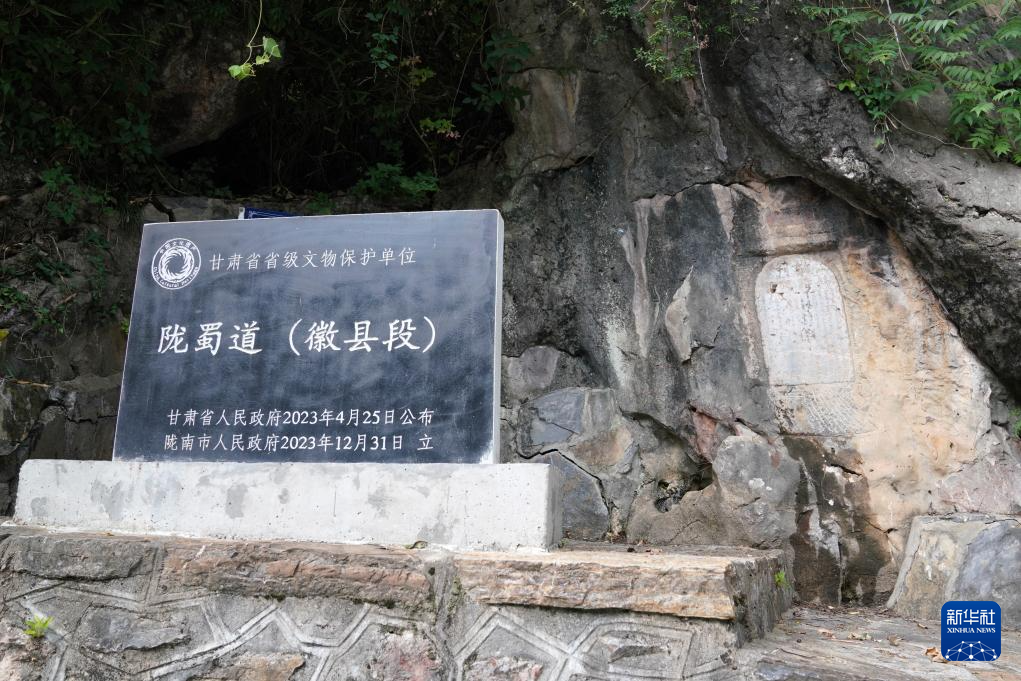 7月14日在甘肅省隴南市徽縣大河店鎮(zhèn)青泥村拍攝的青泥驛石碑。新華社記者 陳斌 攝