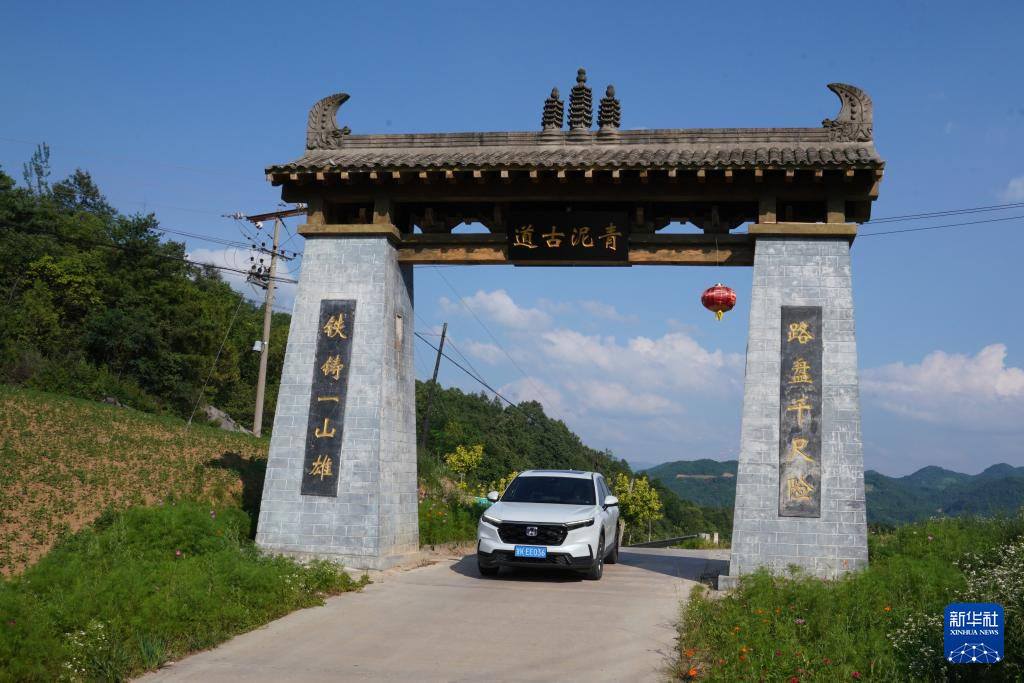 7月14日,一輛汽車行駛在青泥嶺上的鄉(xiāng)村道路上。新華社記者 馬寧 攝