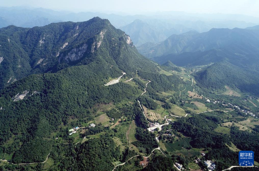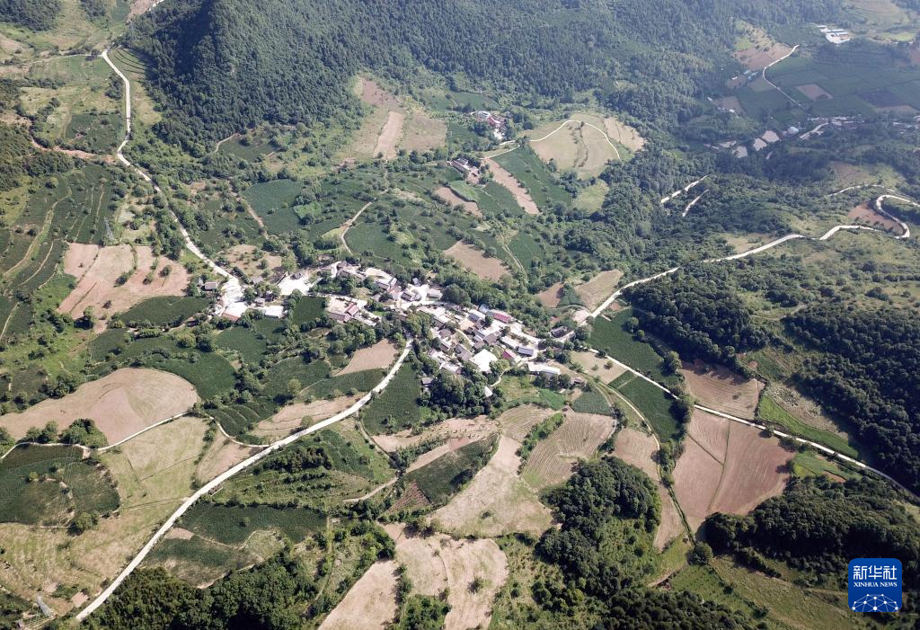 7月14日拍攝的青泥嶺上的村莊和鄉(xiāng)村道路(無(wú)人機(jī)照片)。新華社記者 馬寧 攝