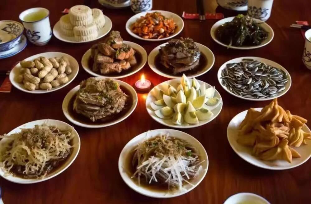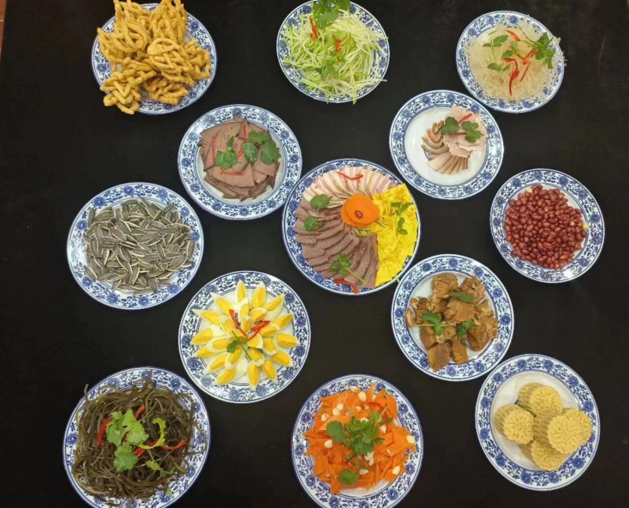 ——“十三花”,寓意胡太后以民為本的執(zhí)政理念;城內(nèi)四個(gè)葷菜,寓意人民四季安康、幸福美滿;骨頭碟和懸肉碟,寓意父骨母血、尊老孝親;肝子碟和雞蛋碟,寓意肝膽相照、心心相?。凰膫€(gè)水菜碟子水圍城,寓意順風(fēng)順?biāo)?、四方平安;城外瓜籽花生碟,寓意多子多福、多祿多壽;路食和果子,寓意衣豐食足、一路平安;最中間一個(gè)大碟全盤(pán)為中心,寓意團(tuán)結(jié)聚力、天下一心。