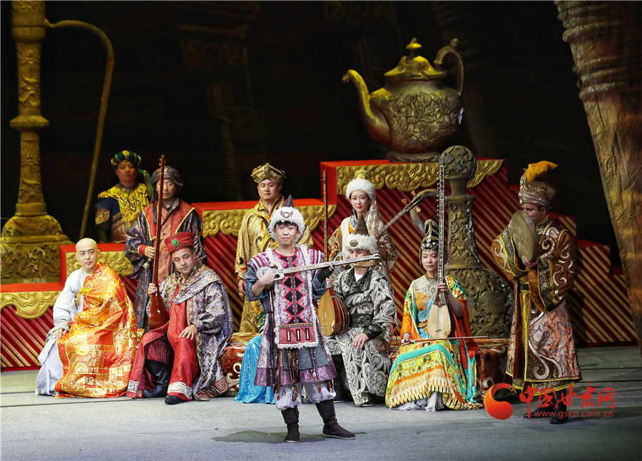 《玄奘西行》作為世界首部大型民族器樂劇,以絲綢之路文化交流使者玄奘的歷史故事為題材,集多民族樂器演奏和戲劇表演為一體,集中展示了敦煌莫高窟壁畫復原古樂器及古絲綢之路各民族傳統(tǒng)音樂的美妙旋律,體現了當代民族音樂的繼承與創(chuàng)新精神,是我國民族器樂舞臺藝術的高峰之作。演出結束后,中央民族樂團向甘肅省文藝院團捐贈舞美道具,并指導幫助甘肅省文藝院團實現《玄奘西行》的常態(tài)化駐場演出,為甘肅省再添一張靚麗的文藝名片。