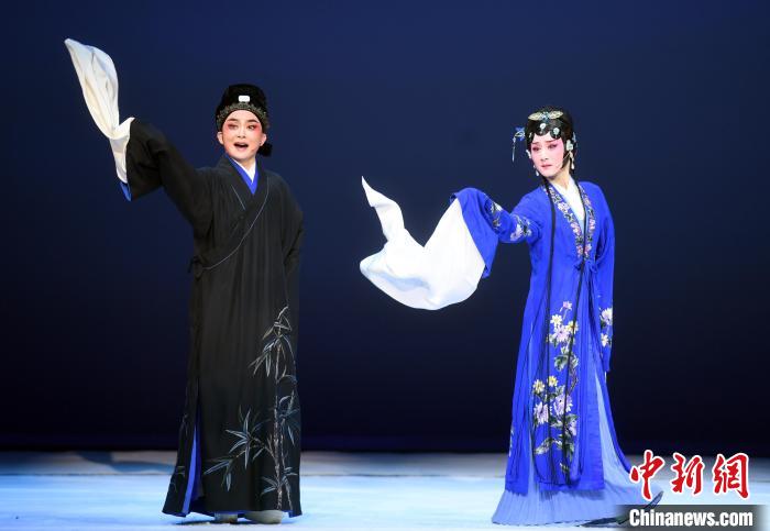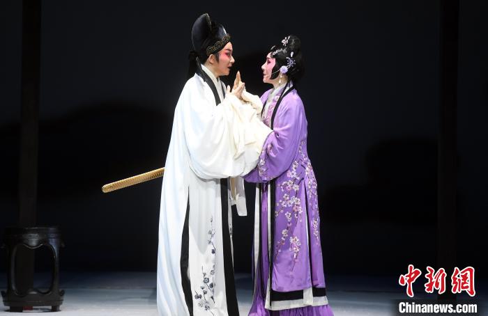 在劇中,唐琬由國(guó)家一級(jí)演員鄭全(右)飾演,陸游則由中國(guó)戲劇梅花獎(jiǎng)得主陳麗宇(左)飾演。 記者劉可耕 攝