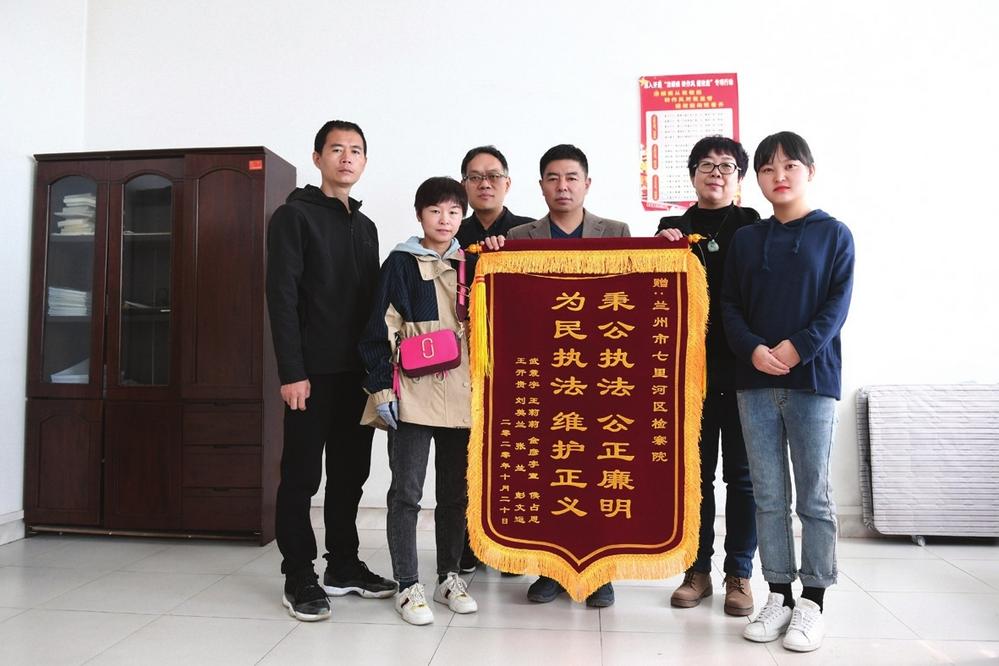 中國甘肅網(wǎng)10月27日訊 據(jù)蘭州晚報報道(記者 許沛潔 文/圖) “今天,我們專程過來感謝各位檢察官。你們維護了公平正義,如果沒有檢察院的依法監(jiān)督,我們這8個家庭就要背負287萬元的債務(wù)!”這份感謝來自七里河區(qū)檢察院辦理的一起民事審判監(jiān)督系列案件的多名申請人。10月26日,他們將一面錦旗交到了七里河區(qū)檢察院梁德安副檢察長和第四檢察部負責人手中,表達對辦案檢察官的感謝之情。
