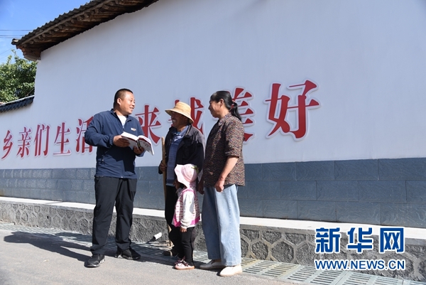 8月5日,元古堆村內(nèi),村支書朱惠軍正在進(jìn)行普法工作。新華社記者 崔翰超 攝