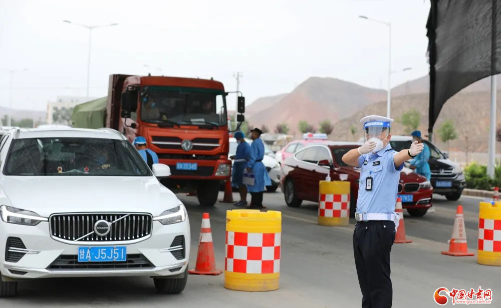 韓家河治安檢查站,執(zhí)勤民輔警協(xié)同配合責任成員單位工作人員嚴守蘭州南大門,做好跨地區(qū)出行人員勸導(dǎo),全力筑牢“外防輸入 內(nèi)防輸出”安全屏障。楊 釗/攝