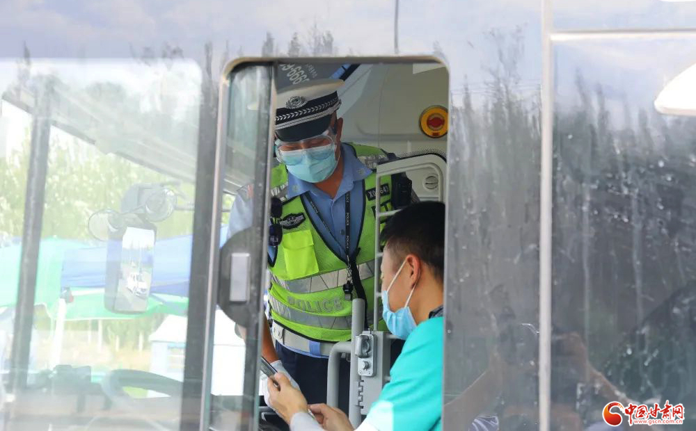 蘭州新區(qū)公安民警正在對公共交通駕駛員進行例行檢查。蘭州新區(qū)公安局 王子軒/攝