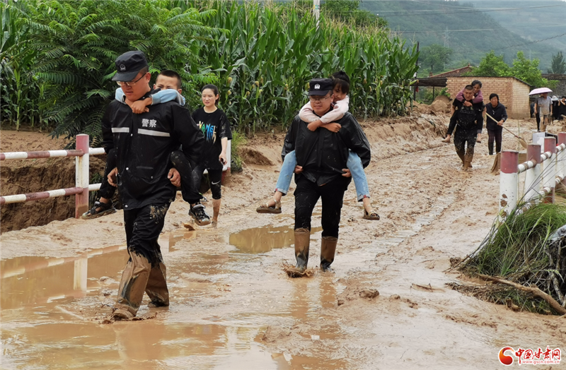 7月15日清晨,洪水致慶城縣主干道G211銀西公路、阜桐公路和村道多處出現(xiàn)滑坡、塌方以及部分民房進水等險情,馬嶺鎮(zhèn)上午旗村數(shù)百名群眾被困,慶城縣公安局緊急組織警力趕赴現(xiàn)場,成功救出被困村民80余人。