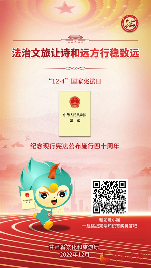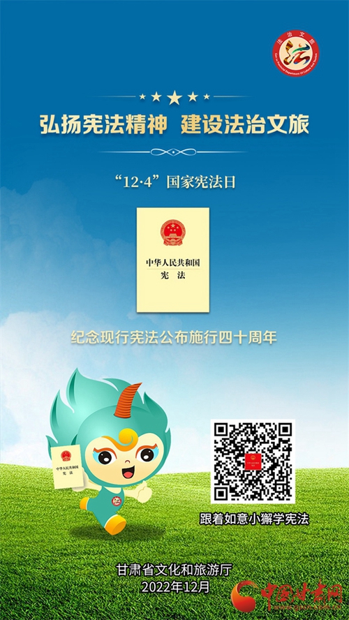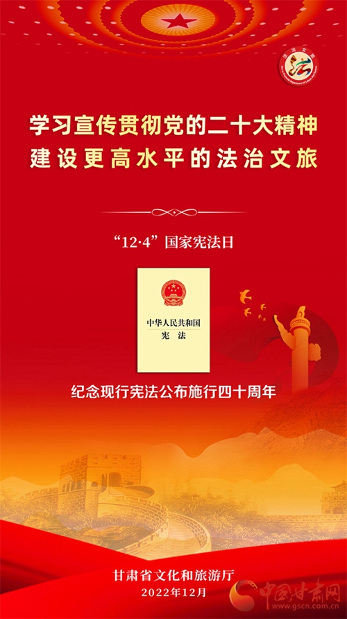 中國甘肅網(wǎng)12月7日訊 (本網(wǎng)記者 張?zhí)m琴)自12月4日國家憲法日暨憲法宣傳周啟動以來,我省各地開展了形式多樣的宣傳活動,為深入學(xué)習(xí)宣傳貫徹黨的二十大精神,不斷增強人民群眾法治意識,形成全民維護憲法的濃厚氛圍,同時加強文化和旅游的法治宣傳教育,省文旅廳近日開展了國家憲法日暨憲法宣傳周系列活動。