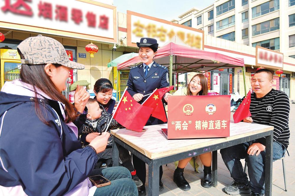3月12日,臨澤縣公安局工業(yè)開(kāi)發(fā)區(qū)派出所民警走街入戶,與群眾共同學(xué)習(xí)全國(guó)兩會(huì)精神。新甘肅·甘肅法治報(bào)通訊員安學(xué)海攝