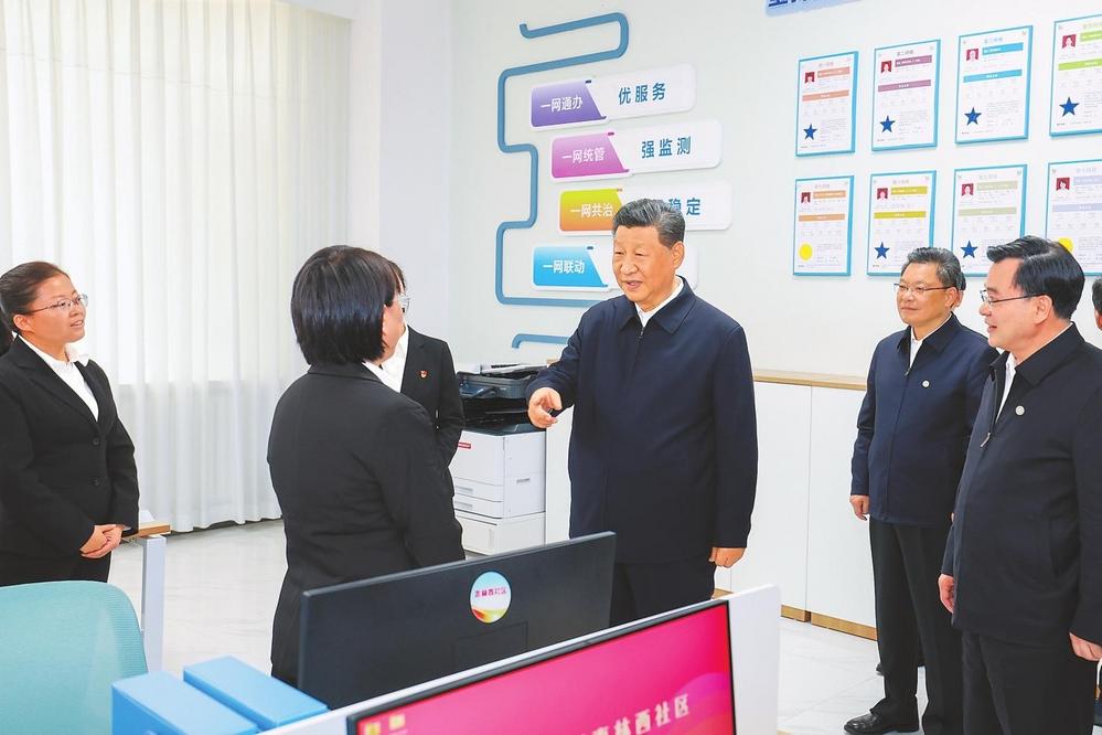 9月10日至13日,中共中央總書記、國(guó)家主席、中央軍委主席習(xí)近平在甘肅考察。這是11日下午,習(xí)近平在蘭州市安寧區(qū)棗林西社區(qū)黨群服務(wù)中心考察。新華社記者王曄