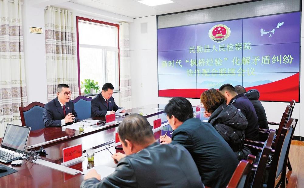 民勤縣檢察院召開新時代“楓橋經(jīng)驗(yàn)”化解矛盾糾紛協(xié)作配合聯(lián)席會議,用心用力用情化解各類矛盾糾紛(2024年3月19日拍攝)。
