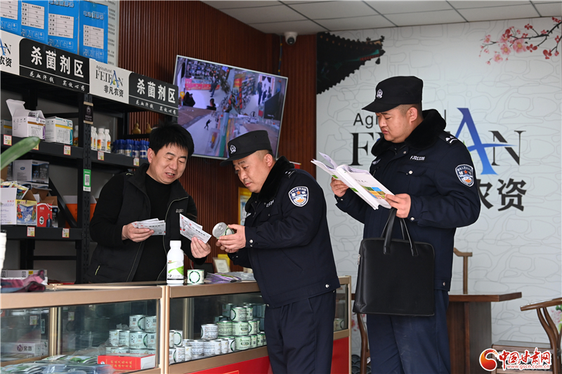 春耕生產,農資先行。在一家農機超市里,榆中縣公安局城關派出所民警正在對門店經營資質、在售農機三包憑證、消防設備配備情況等內容進行詳細檢查,要求經營者落實主體責任,恪守誠信經營底線,嚴禁銷售不符合安全標準的農機具,確保經營活動合法合規(guī)。