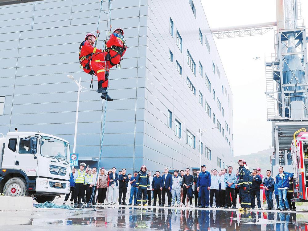 天水經(jīng)濟(jì)技術(shù)開(kāi)發(fā)區(qū)“5·12”消防實(shí)戰(zhàn)演練現(xiàn)場(chǎng)。新甘肅·甘肅法治報(bào)通訊員王琦攝