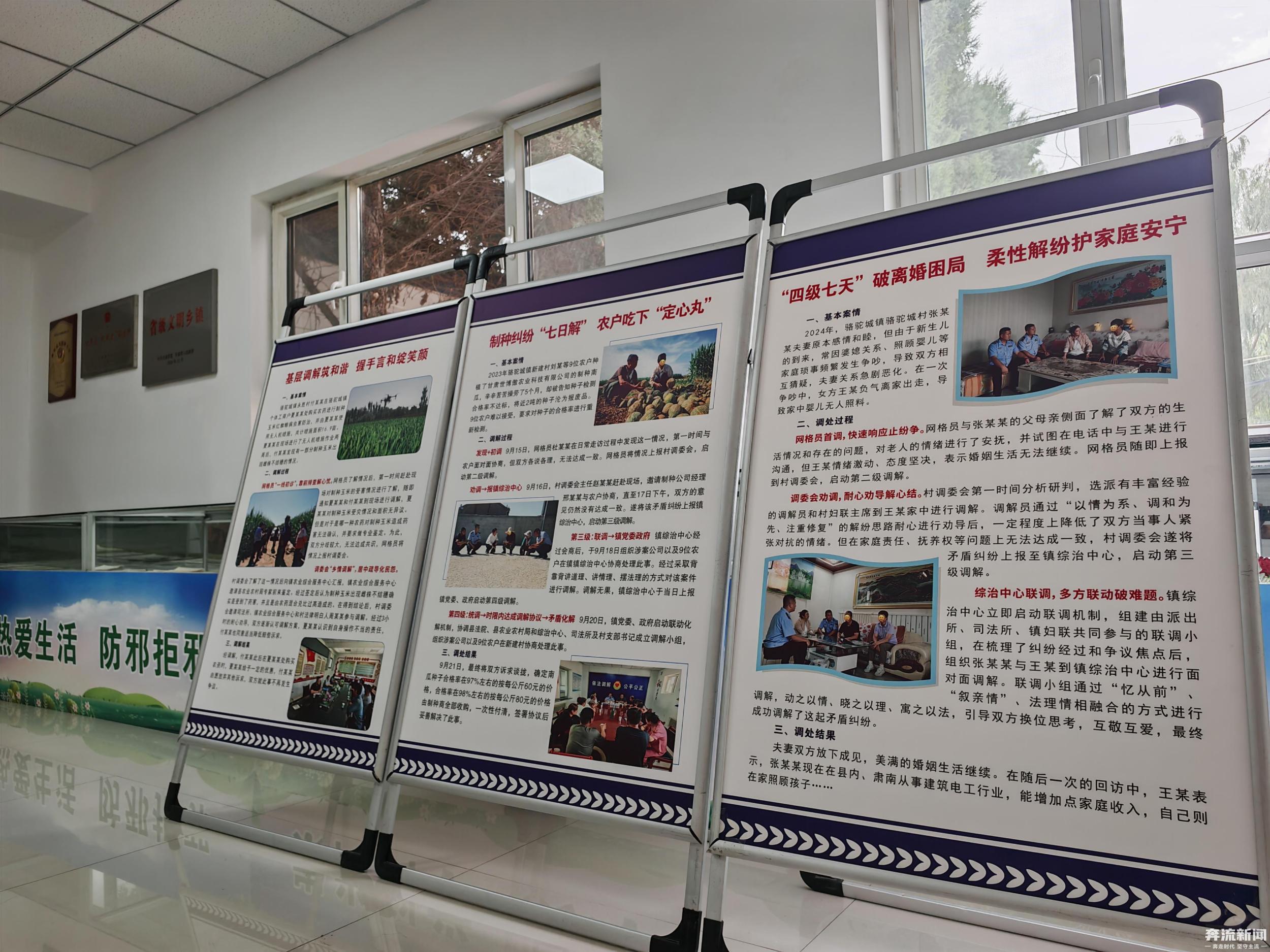 駱駝城鎮(zhèn)是高臺縣推行“四級七天”調解工作法的典型樣本。作為一個移民鄉(xiāng)鎮(zhèn),這里聚居著12個民族、來自5省8區(qū)的群眾。水事、農事糾紛一度高發(fā)。