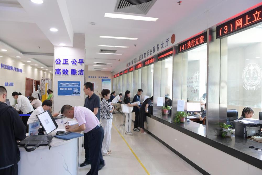 如今,網(wǎng)上立案服務(wù)讓大部分當(dāng)事人及其代理人足不出戶就可以立案。訴訟服務(wù)中心集齊了案件查詢、立案、保全、繳費(fèi)退費(fèi)等服務(wù)功能,并設(shè)有專人導(dǎo)訴答疑。即使在辦事的高峰期,各窗口依然運(yùn)轉(zhuǎn)有序。