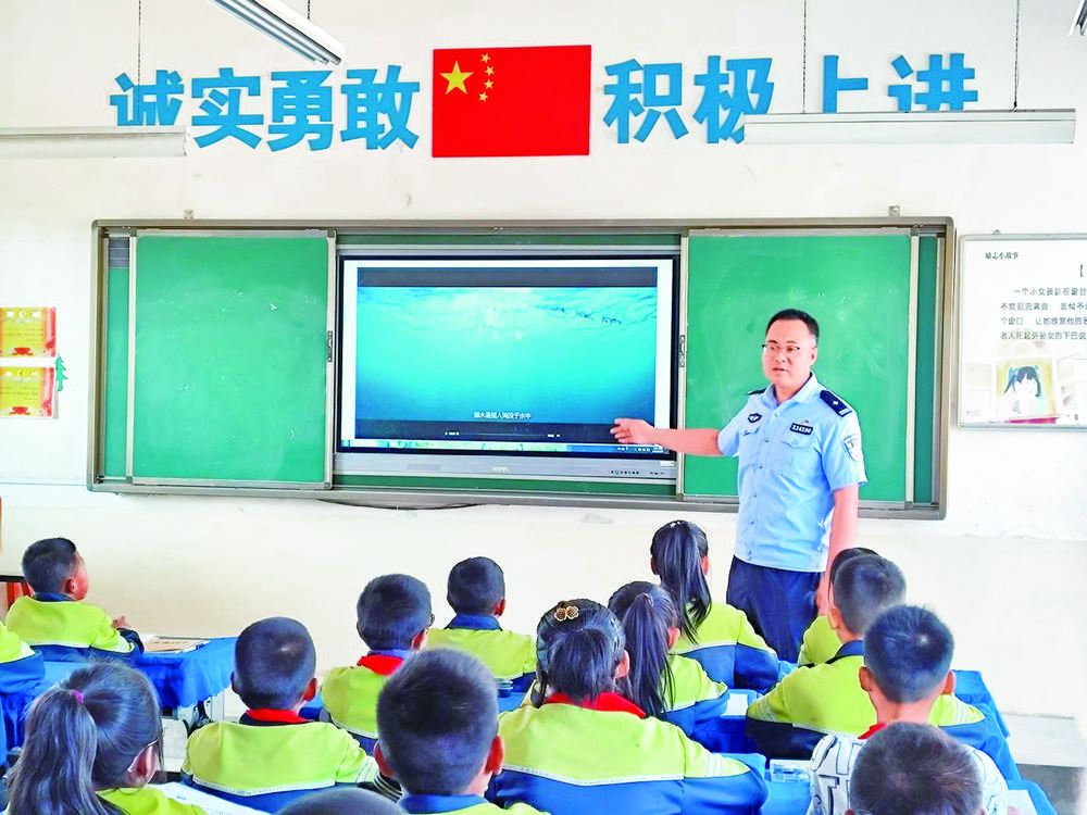 張建平向?qū)W生們宣講防溺水安全知識。