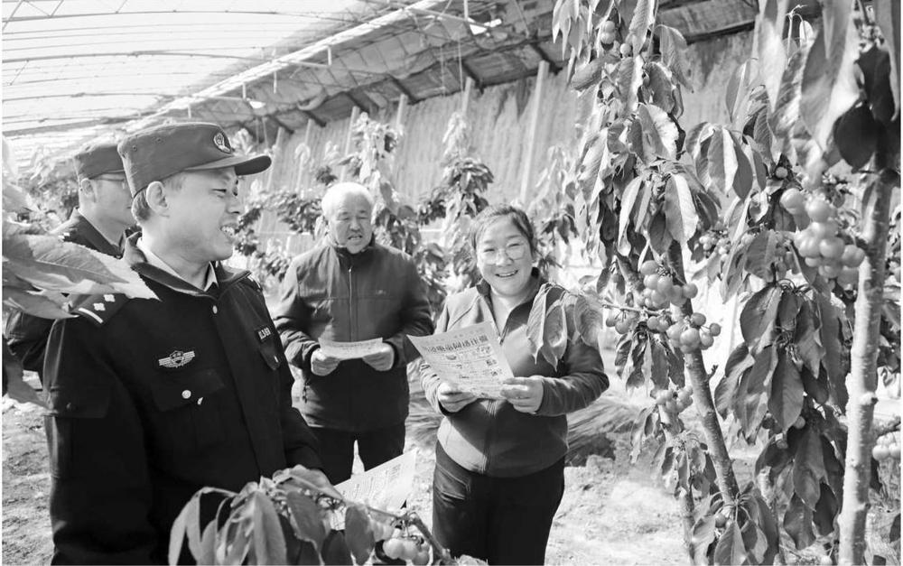 3月10日,西峰公安分局顯勝派出所民警走進(jìn)櫻桃大棚開展食品安全宣傳活動。新甘肅·甘肅法治報(bào)通訊員 左棟 攝