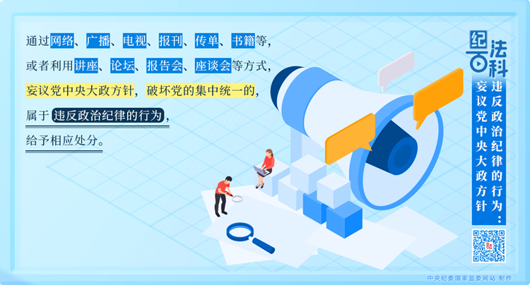 執(zhí)紀監(jiān)督中發(fā)現(xiàn),有的黨員、干部“當面不說、背后亂說”“會上不說、會后亂說”“臺上不說、臺下亂說”,對黨中央大政方針說三道四。這些言論擾亂黨員、干部思想,破壞黨的團結(jié)統(tǒng)一,妨礙黨中央大政方針的貫徹落實,必須依規(guī)依紀嚴肅處理。