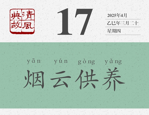 煙云,即山水風景。供養(yǎng),即陶冶滋養(yǎng)。“畫中煙云供養(yǎng)”的原意是,黃公望和米友仁之所以貌如童顏,神明不衰,是因為其山水畫中煙雨濛濛、薄霧繚繞的意境滋養(yǎng)了他們。后世即以“煙云供養(yǎng)”為典,喻美好的自然環(huán)境,可以舒暢人的心情,撫慰人的精神。這就是為什么人們把自然環(huán)境好的地方稱作“養(yǎng)生之地”的原因。錢大昕《梁山舟前輩八十》詩:“占得西湖第一峰,煙云供養(yǎng)幾千重。門懸曼碩山舟字,人識坡公笠屐容。”